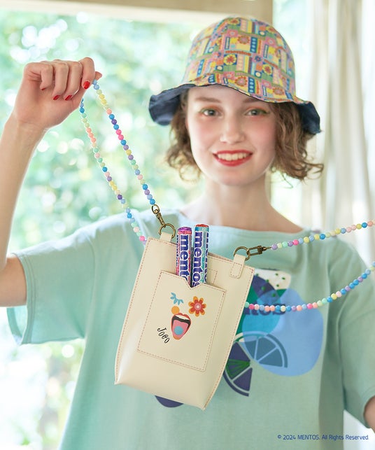 この度、同じくカラフルで、コロンとかわいいメントスとのコラボレーションが実現。グリーンアップルの緑、ミントの水色、ストロベリーのピンクなど、カラフルで気分が弾む、楽しくポップなアイテムを提案します。