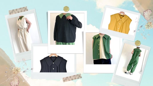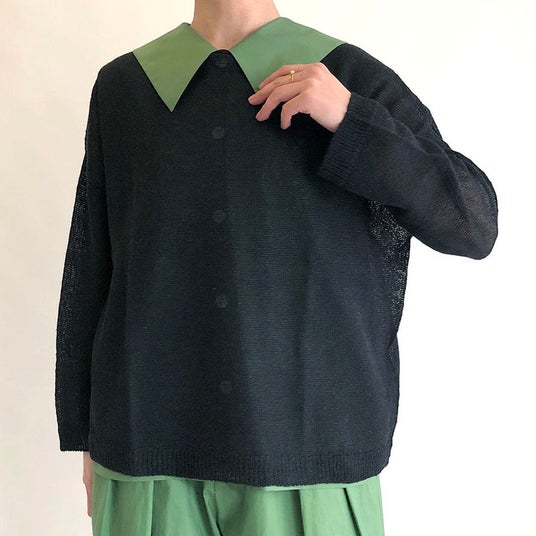 特徴的な衿は、上に1枚重ねることで一層映えるチャームポイントに。