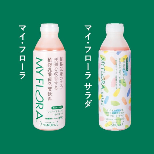 「シンバイオティクス マイ・フローラ」【機能性表示食品】は、「おなかを育てる」をコンセプトにしている野村乳業(1897年創業)が培ってきた独自の発酵技術を用い、広島大学との共同研究から生まれた新しい乳酸菌飲料です。一般的な乳酸菌飲料が牛乳を動物乳酸菌で発酵させているのに対し、「マイ・フローラ」は生命力の強い“植物乳酸菌”で野菜を発酵させています。にんじんの自然な甘さに乳酸菌が醸す酸味がマッチしたさわやかな味です。