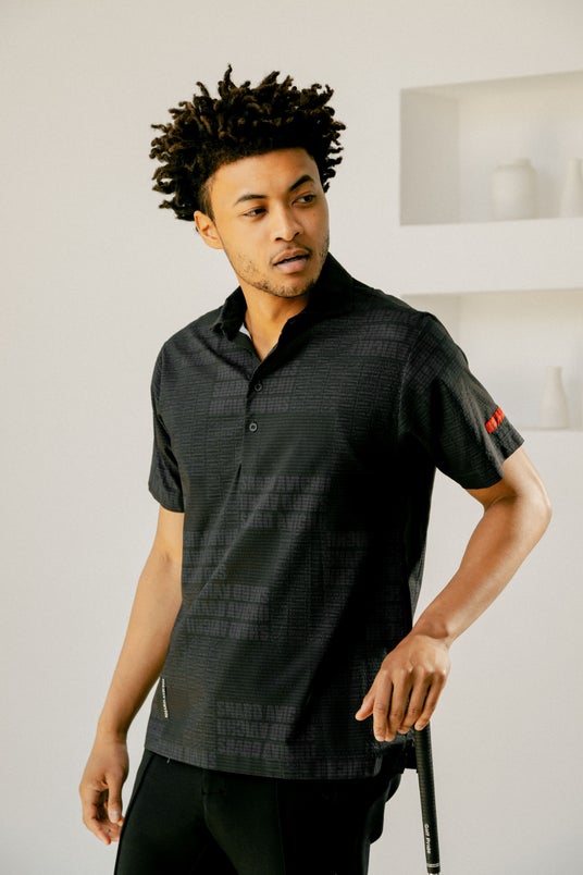 HIGH PERFORMANCE POLO SHIRT / BLACKHIGH PERFORMANCE POLO SHIRT袖下のゆとりを作る事でスイングの動きやすさ を可能にした、デザイン性を兼ね備えた高機能 軽量ポロシャツ