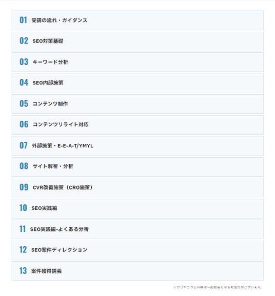 ※改善のため講座内容が予告なく変更となる場合がございます。※詳細はオンラインカウンセリングにて説明いたします。