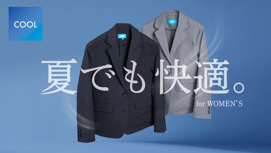 この度、通気性と速乾性に優れたレディース夏用スーツ「クールテーラードジャケット」と「クールストレートパンツ」を2024年4月26日(金)より販売いたします。昨年早い時期に完売したことから、今年は昨年の2.5倍量を生産いたしました。購入者からは「見た目は普通のスーツと変わらないのに、着てみるとすごく涼しい」「汗染みになりにくく熱がこもりにくく良い」という声を多数頂いております。