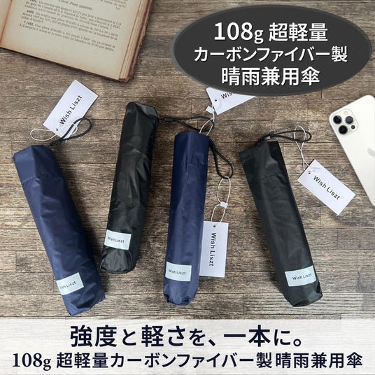 骨組みにカーボンファイバーを採用し超軽量108gを実現。スマートフォンよりも軽く、小さいバッグやポケットにも入るコンパクトボディは持ち歩きや常備傘としてストレスを与えません。