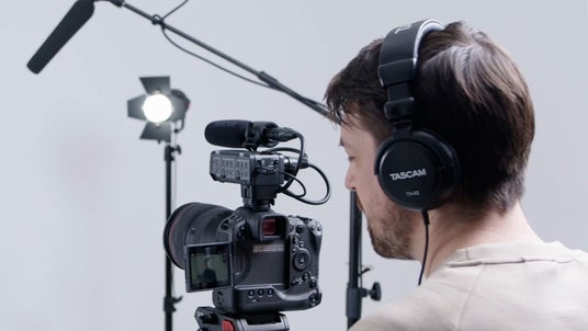 – ご持参のカメラとカメラ用XLRマイクアダプター『CA-XLR2d』を使用し、ショットガンマイクやハンドマイク、ワイヤレスマイクを接続しての動画収録テスト。