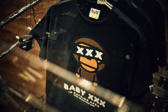 Tシャツは、APE HEAD、COLLEGE LOGO、BAPE(R)︎ BEE、BABY MILO(R)︎、BEETHOVEN、GENERALといったBAPE(R)︎の定番グラフィックを「XXX」のロゴでアレンジ。
