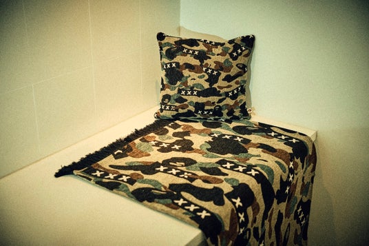 スノボジャケットとシャークフーディ、クッション、ラグは、BAPE(R)︎ CAMOを「XXX」のロゴでアレンジしています。