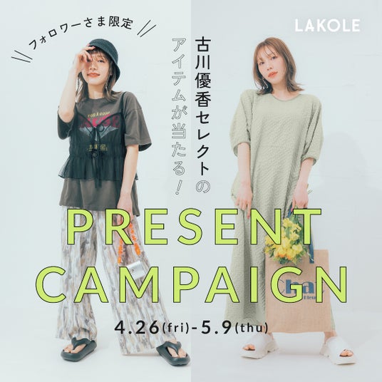 アンバサダー古川優香セレクトのLAKOLEアイテムがもらえる、プレゼントキャンペーンを実施します。