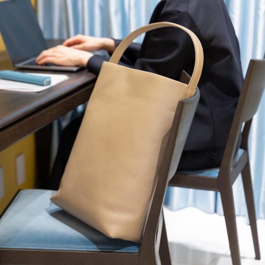 本革なのに軽く、お手入れも簡単なバケツ型トートバッグ。機能的でビジネスパフォーマンスを高めてくれるだけでなく、オフシーンでもお持ちいただける適度なカジュアル感を兼ね備え、毎日お使いいただけるものを目指しました。