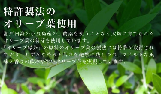 「オリーブ緑茶」の原料のオリーブ葉の製法には特許が取得されており、