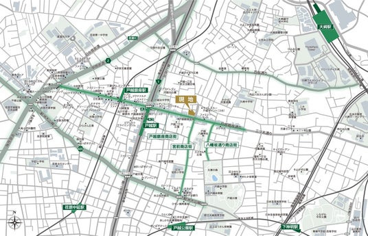 本物件は、戸越銀座商店街に近接しています。全長約1.3kmにわたる関東有数の長さを誇る商店街沿いには、約400件の店舗が軒を連ねています。飲食店、クリーニング店、生花店など活気のあるお店が日常の暮らしに彩りを添えてくれます。