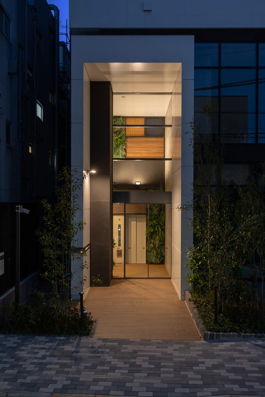 複数のBOXが積み重なったようなオリジナリティあふれる外観で街のにぎわいや多様性を表現し、エントランスには入居者を迎え入れるゲートを設えました。道路に面して歩道状空地や広場状空地を設けており、周辺と調和する緑豊かな空間を創出しています。