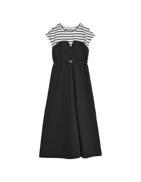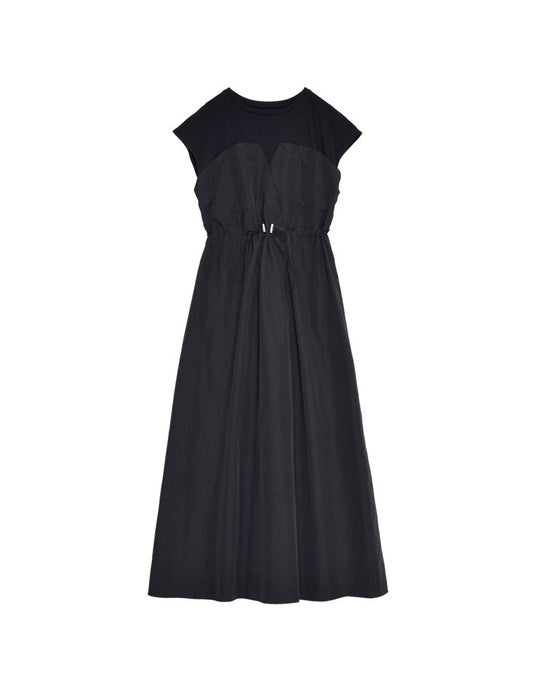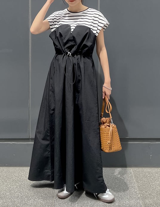 [低身長/高身長サイズ有]フレンチスリーブカットソー切り替えドロストフレアドッキングワンピース
