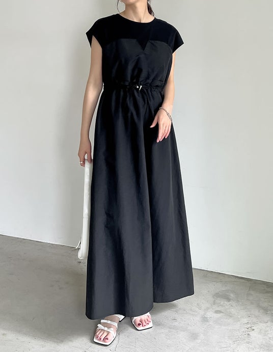 ウエストのドロストデザインは、大人モードな印象をプラス。