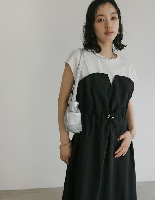 1枚で旬のスタイリングが完成するドッキングワンピースです。