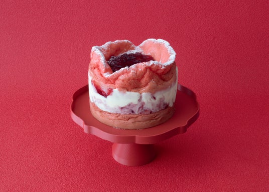 カルパトカはポーランドの伝統的なクリームパイ。目に鮮やかな赤いシュー生地は上下でサクサクとモチモチの異なる食感、とろける甘さのムースリーヌにフランボワーズを煮込んだコンフィチュールを絶妙に混ぜ合わせ、内部にはパッションフルーツのソースを絞って爽快な酸味をプラス。個性的なフォルムのシュー生地の上にはストロベリーのコンフィチュールをのせています。仕上げに粉糖を飾れば、母の日を華やかに彩る特別なスイーツに。