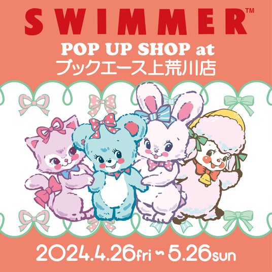 2024年4月26日(金)~5月26日(日)までの1か月間、ブックエース上荒川店(福島県)にて開催します。福島県でのSWIMMER POP UP SHOP開催は今回が初めてです!ぜひお買い物をお楽しみくださいね♪
