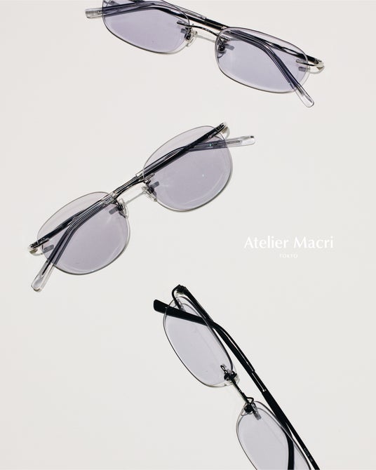 このコレクションでは、時流に即した側面を持ちつつも、Atelier Macriのフィルターを通し再解釈する『縁無し』というひとつのプロダクトカテゴリーを、トレンドとして消費されるデザインとは一線を画す独自のリスタイリングを施している。
