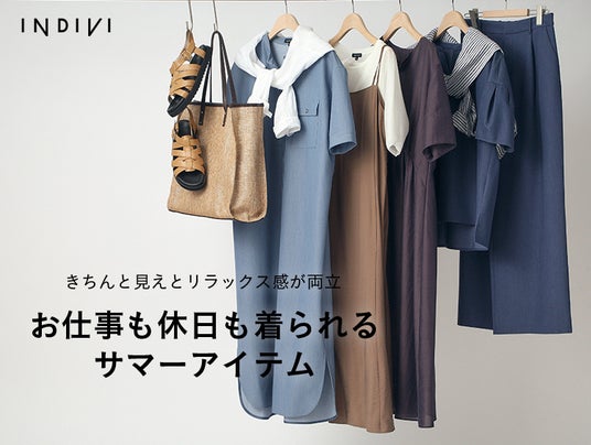 ぜひこの機会に、INDIVIの『お仕事も休日も着られるサマーアイテム』特集ページをご覧ください。
