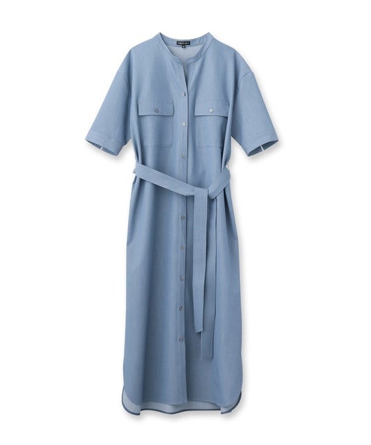 トレンドのデニムライクな素材を使用したシャツワンピース。