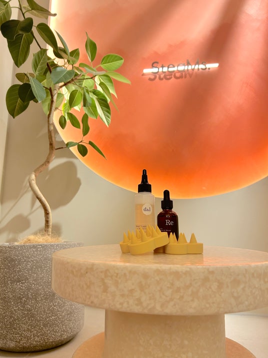 ベストコスメ賞を受賞するほど人気を集める“uka scalp brush kenzan”。スチームサウナで血行が良くなり柔らかくなった頭皮に使うことで顔のリフトアップや頭皮マッサージの効果をより感じていただけるのが最大の魅力です。今回のレンタルプランは、uka headspa manager/製品開発/毛髪診断士の大友麻莉子さんの監修によるもの。ケンザンはスチームサウナで柔らいだ頭皮にやさしく、程よい硬さのトゲトゲでしっかり皮膚を掴み引き上げることができるミディアムの硬さ(ウカストア限定トーキョーイエロー)を選びました。両手に持ってダブル使いができるよう2個セットでお使いいただけます。