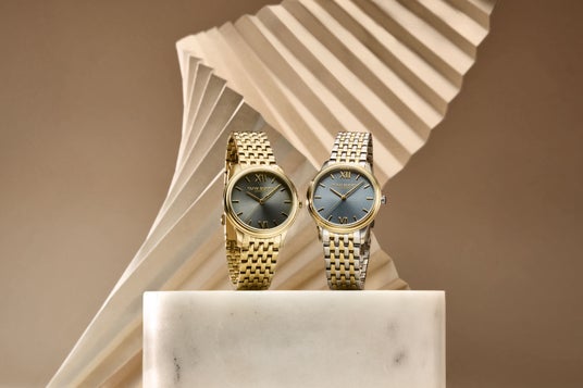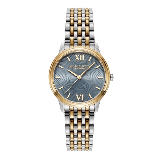 2トーンのブレスレットストラップでまとめられ、ロンドンの洗練されたスタイルを表現している。
