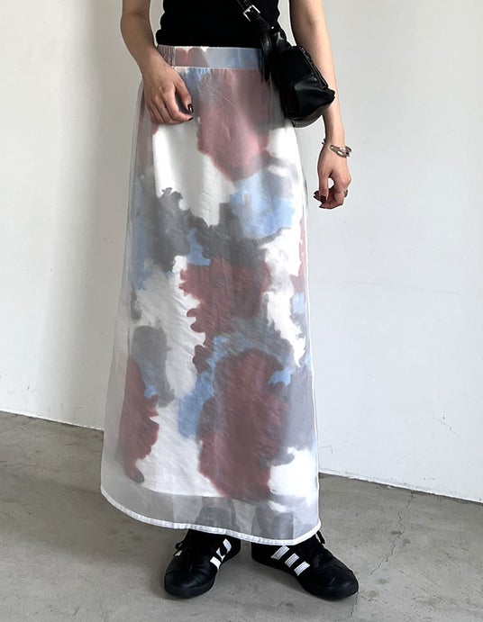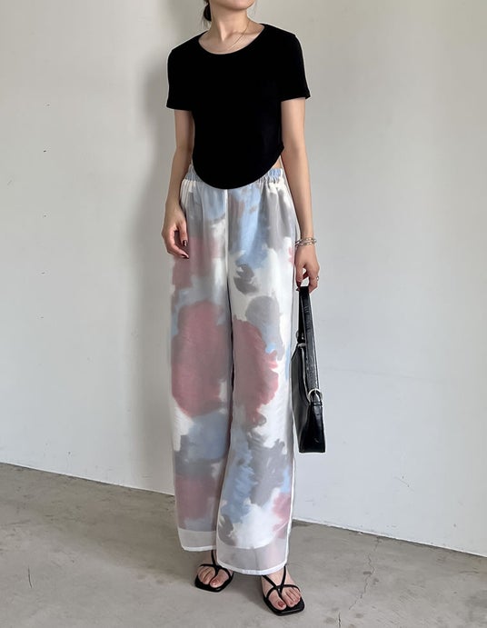商品名:アート柄オーガンジーレイヤードワイドパンツ