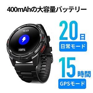 安心の長時間駆動バッテリー日常的な使用であれば約20日間バッテリーが持続するため、ほとんど充電を気にする必要がありません。GPS機能を使い続けた場合でも約15時間使い続けることができます。