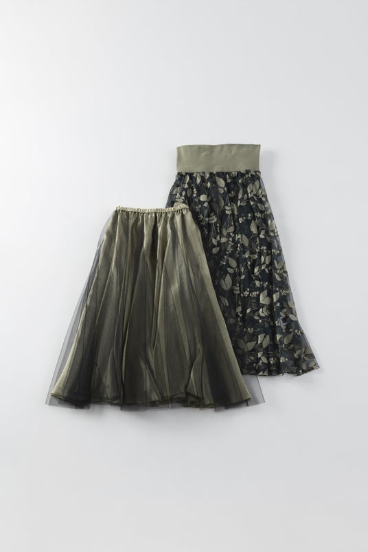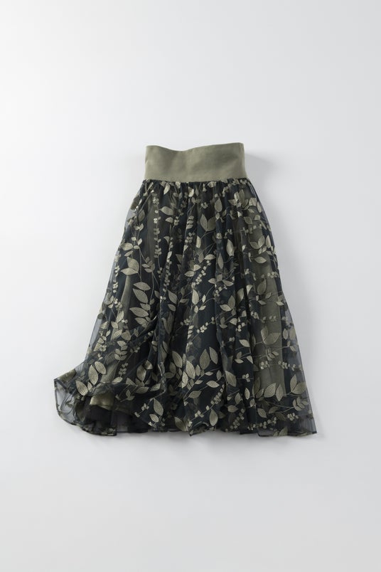 Layered Lace Skirt ¥64,900「ステートメント・スカート」として製作したレース刺繍×チュールのレイヤードスカート。ペチコートやチュールスカート単体でも着回せます。カジュアルにもクラシックにも気遊べる1着なので、シーンに縛られることなく自由に遊んでほしいアイテムです。
