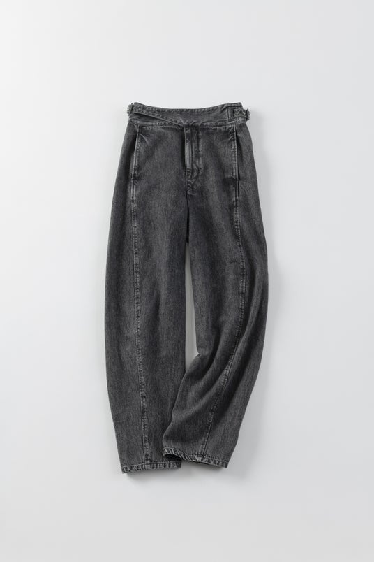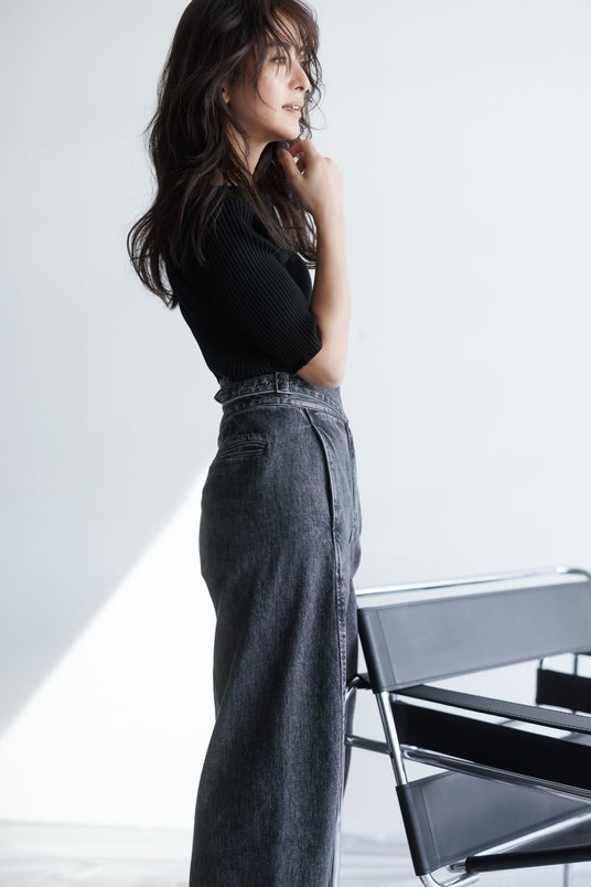 Black High-waisted Jeans ¥33,000少しだけユーズド感のある力の抜けた色味を選んでいるので、真っ黒なカットソーやブラウスの緊張感を和らげてもくれます。サイドポケットから繋がる絶妙な3Dのカッティング仕様で、はいた時にストンと落ちる美しいシルエットです。