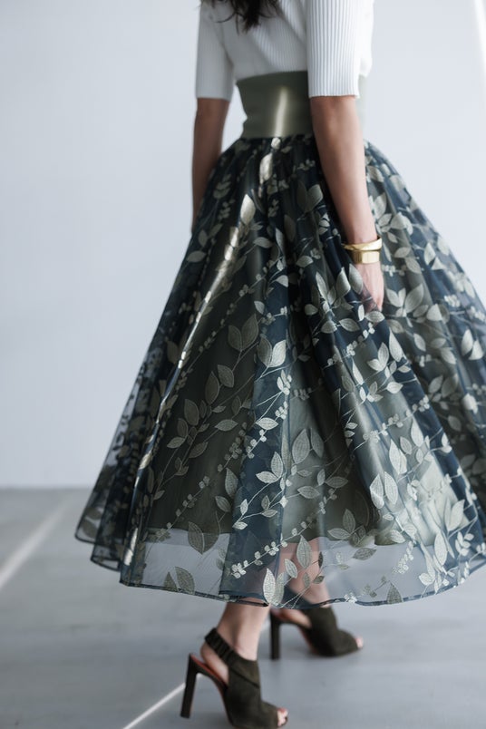 ワードローブに1着あるだけで装いが楽しくなる“主張”のあるスカート「ステートメント・スカート」の収集家でもある私から皆さんにその楽しさをお届けしたくて。今回のカプセルコレクションの始まりといえる1着がこのスカートです。