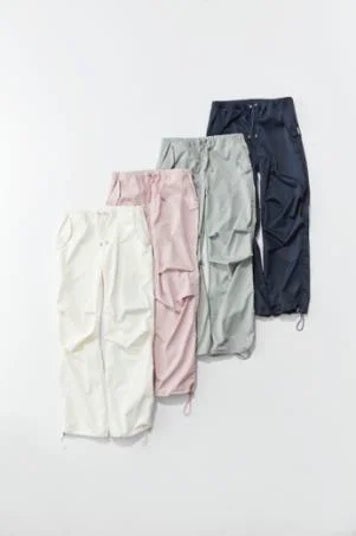 UVケア、透け防止、撥水などふんだんに機能を盛り込んだパラシュートパンツ。ストレッチ素材を採用し、夏でも軽やかな履き心地を実現。