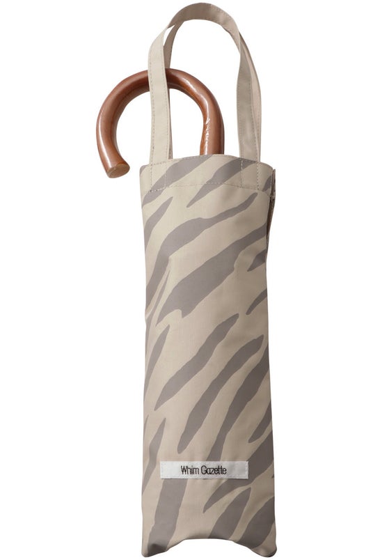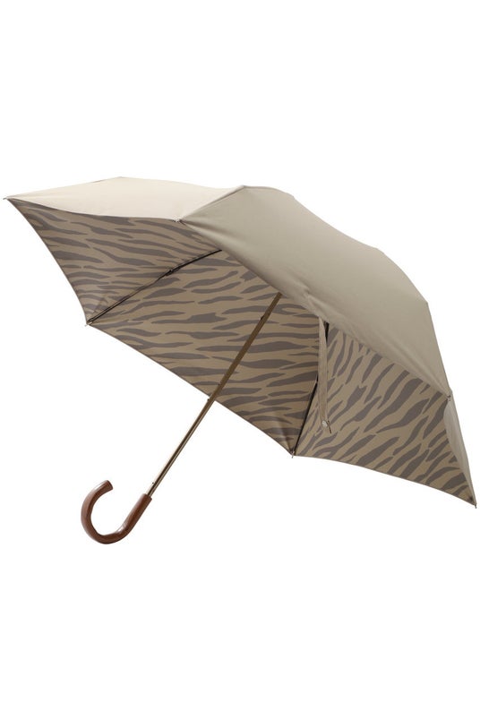 内側にはウィム ガゼットらしい上品なゼブラ柄を施したデザイン。落ち着いたカラーリングがデイリーから休日まで、シーンレスに使える傘が到着。指先を美しくみせるカーブ状の木製ハンドルは、手に馴染み持ちやすいのも◎。手提げタイプの外袋付きで持ち歩きもしやすく、日常的に日差し対策をしたい方にもおすすめ。幅広いスタイリングに馴染む、大人っぽいシックなカラーバリエーションもポイント。