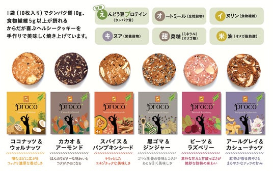 Proco(プロコ)ハーフサイズ(1袋10枚入りでタンパク質10g以上・食物繊維5g以上を含むヘルシークッキー)