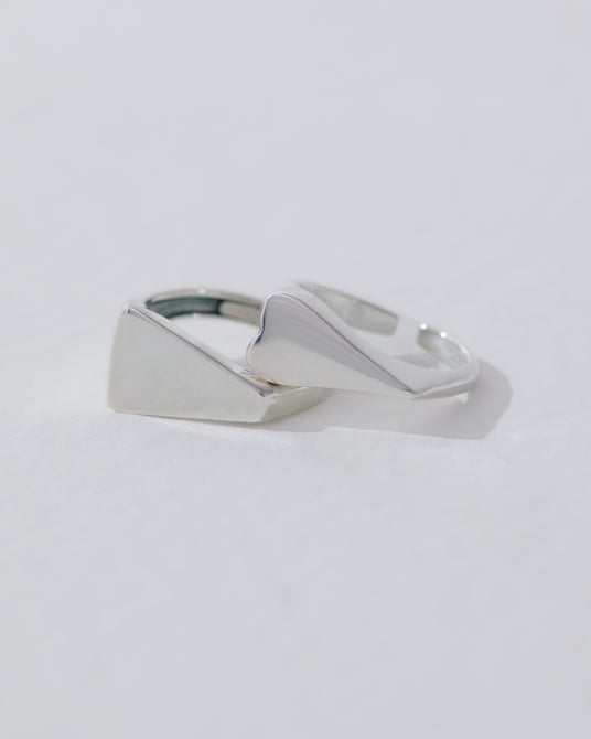 スタイリッシュなハートのbravery ringと三角形モチーフのthorn ringの2デザイン。