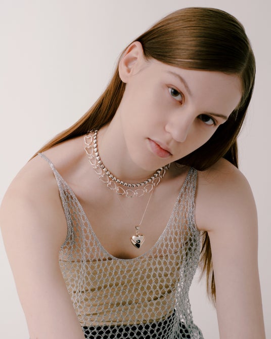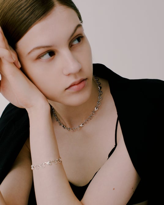 ニュアンスの効いたハートモチーフが首元に洗練された抜け感をプラス。