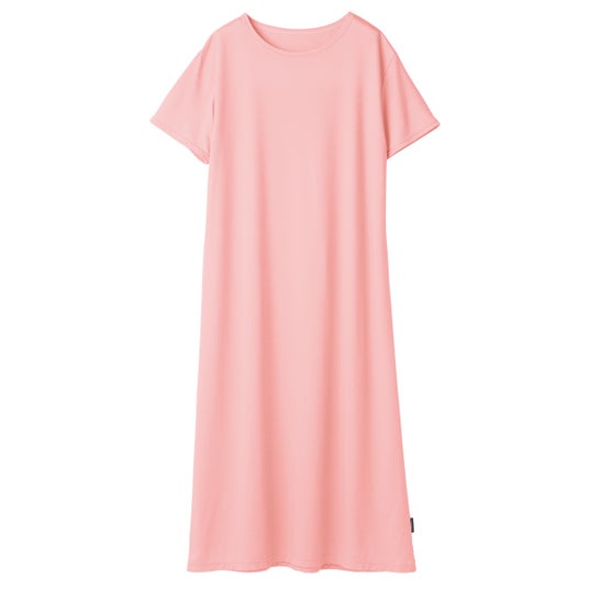 <べネクス>コンフォートクール ワンピース 16,500円 (素材:再生繊維(セルロース)70%、ポリエステル30%/サイズ:ワンサイズ) 触ってひんやり、夏限定シリーズ。両面鹿の子編の特徴を生かし、面ではなく点で肌に触れ合うため肌に触れる面積が少なく通気性があります。接触冷感、高通気を実現した休養時専用の夏のリカバリーウェアです。表面にシルケット加工を施すことにより糸の毛羽立ちを抑え、毛玉にもなりにくく、するっと着られ、汗をかいてもサラっとした着心地で暑い季節にぴったり。