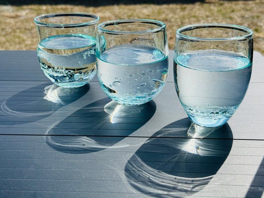 サーキュラーチームとガラス職人の手によって形を変え、美しいロックグラスへと生まれ変わった水槽ガラス。