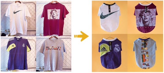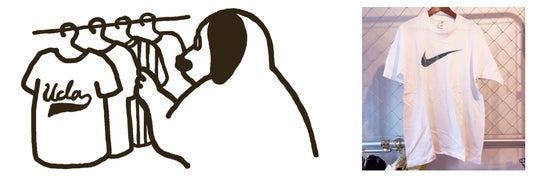 アメリカ西海岸を仕入れ元の中心としたヴィンテージウェアから、リメイクのベースとなるウェアを選びます。その後仕上げサイズとリブのカラー、タグに刺繍する愛犬のお名前のフォントと糸色を指定し、世界で1着のウェアを作ります。オーダーから約1ヶ月、ご自宅への配送もしくは店頭での受け取りを楽しみにお待ちください。
