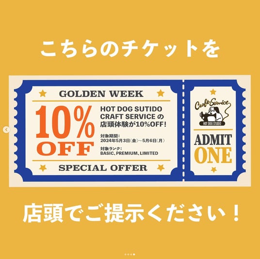 GW期間中、学芸大学店店舗限定でCRAFT SERVICEを10%OFFで体験いただけるキャンペーンを実施します。以下のチケット画像を店頭でご提示いただくことで、割引を適用いたします。