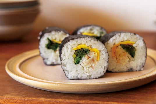酢飯も巻きすも使わないで作れる「巻きおにぎり」。オーブンシートの上にのりとごはん、具をのせて巻くだけ。ハーフサイズののりを使うので、誰でも簡単に巻けます。人気のキンパ(韓国風のり巻き)も紹介。ちょっとしたパーティーやピクニックでも喜ばれること間違いなしのレシピばかりです。
