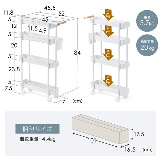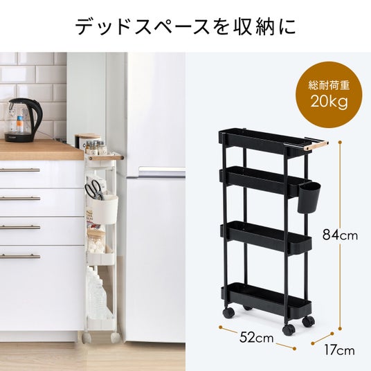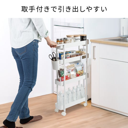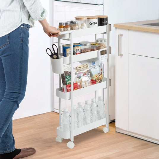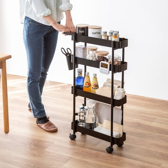 17cmの幅でありながら、多彩な収納方法や安全性、耐久性を兼ね備えた縦型のスリムワゴンは、使い勝手の良さが良く、隙間を有効活用し、収納力をアップさせることで、生活空間を快適に整えることができます。