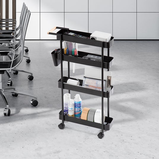 ワゴンの広さとキャスター部のバランスが取れたデザインは、隙間収納に加え、様々な用途で活用できます。家庭内はもちろん、オフィスや店舗などでも幅広く使用できます。