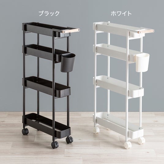 キッチンワゴン スリム キャスター付 隙間収納 取っ手付 バスケットラック 収納 小型 4段