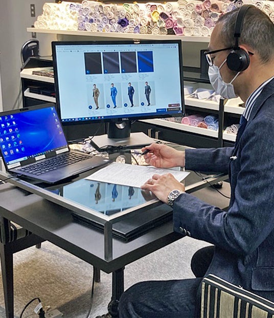 ※オンラインオーダーサービスは一度店舗でご注文をいただいたことがあるお客様が対象です。自宅にいながらもオンラインにてスーツ・シャツをオーダーいただけるサービスです。