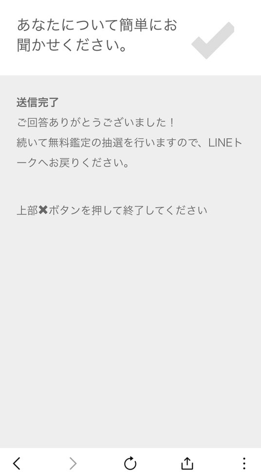 4.フォーム送信完了後に上部×ボタンでLINEトーク画面に戻る
