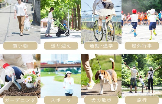 普段の買い物、送り迎え、ゴミ出し、公園、運動会、庭作業、散歩等、