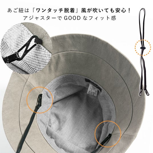 初めての帽子でも安心して被っていただけるように、あご紐とサイズ調整テープの使い方、手洗い洗濯方法と手順、帽子の保管のコツなどをまとめた説明書を付属しているので、