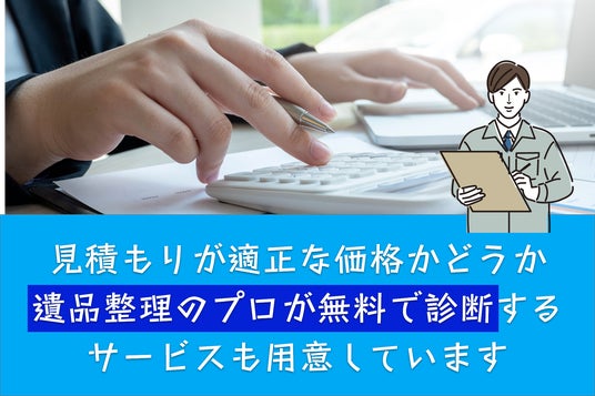 見積もりが適正な価格かどうか、遺品整理のプロが無料で診断するサービスも用意しています。
