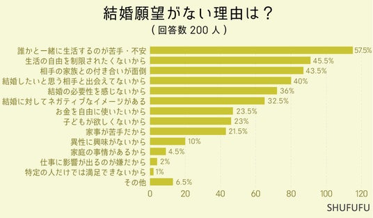 女性200人に「結婚願望がない女性」に関するアンケート調査を行った所、
