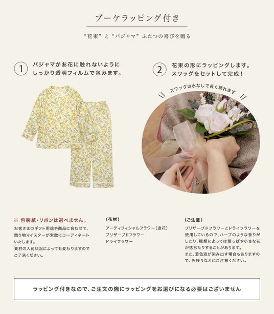 イメージ写真:パジャマブーケ(R) と“花くるみ”パジャマ